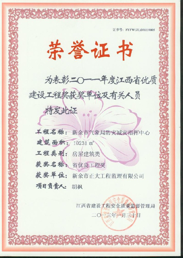 新余市正大工程監理有限公司依托新余市建筑設計院,于1995年11月成立,是新余市開展監理工作最早的監理單位,本公司具有建設部核發的房屋建筑工程甲級監理資質、市政公用工程乙級監理資質、國家人防辦核發的人防工程監理乙級資質。我公司始終堅持“客戶至上、質量第一、信守合同”的經營理念;追求“為社會創造價值、為業主創造效益、為自身謀求發展”的經營宗旨;遵循“守法、誠信、公正、科學、優質、高效”的工作原則,以雄厚的技術力量、完善的管理制度、豐富的監理經驗、良好的企業信譽迅速成為我市監理行業的一支新銳力量! 查看更多>>